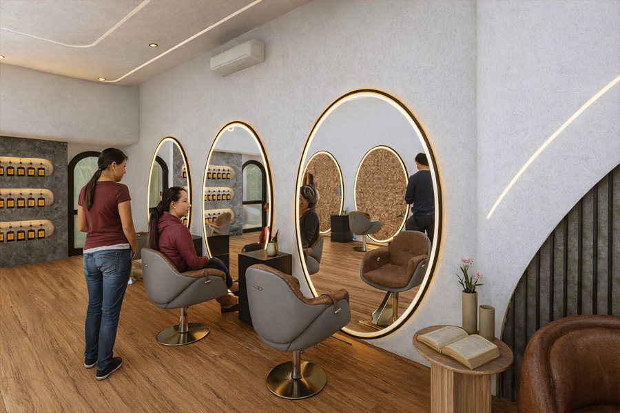 From elegant reception areas to perfectly planned styling stations, we blend aesthetics with functionality. Every detail—from lighting and mirrors to seating and layout—is crafted to create a relaxing yet professional environment that keeps clients coming back.